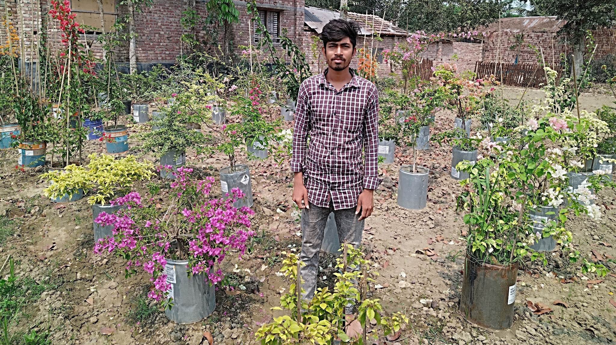 বাড়ির ছাঁদে গড়ে তুলেছেন বাগান বিলাসের চারার নার্সারি। পাশাপাশি বাড়ির পাশেই ১৭ শতক জমি বন্ধক নিয়ে বাগান বিলাসের চারা তৈরি করছেন। তিনি জানান প্রথমে বিভিন্ন জায়গা থেকে চারা সংগ্রহ করে সেই চারা বিক্রি করতেন। আর এখন তিনি গাছ ক্রয় করে সেই গাছে কলম দিয়ে চারা তৈরি করেন। তার বাগান বিলাসে চাইনিজ স্লিপিং বিউটি, মেটাল বিউটি, পিংক গ্লো সহ প্রায় ২০০শ জাতের চারা আছে। এক একটি চারা প্রকারভেদে বিক্রি হয় ১০০ টাকা থেকে ৫০০০ টাকা পর্যন্ত। তিনি জানান দেশের বিভিন্ন জায়গায় কুরিয়ারের মাধ্যমে চারা পৌঁছে দেন।