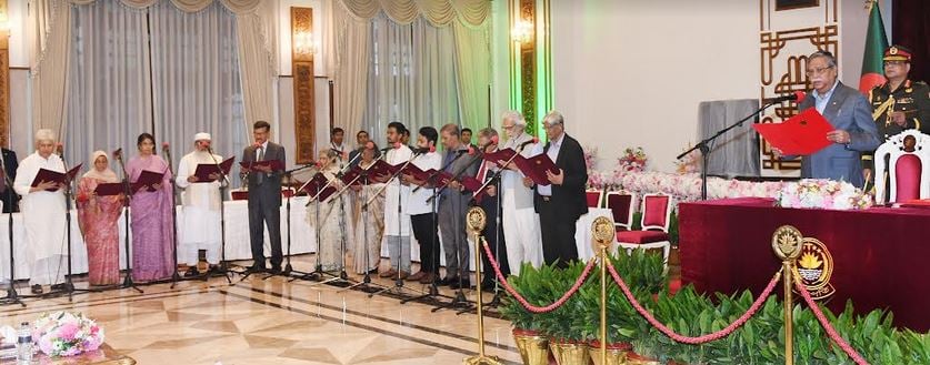 ৮ আগস্ট  সন্ধ্যায় বঙ্গভবন দরবার হলে রাষ্ট্রপতি মো. সাহাবুদ্দিন তাদেরকে শপথ বাক্য পাঠ করান।