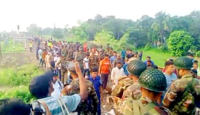 মঙ্গলবার (২৯ অক্টোবর) বিকেলে রাজশাহী থেকে গোপালগঞ্জগামী ‘টুঙ্গিপাড়া এক্সপ্রেস’ ট্রেনের যাত্রা অবরোধ করে তারা এ দাবি জানান। ডহরশৈলা গ্রামের শতশত নারী-পুরুষ এসময় রেললাইনের ওপর অবস্থান নিয়ে টুঙ্গিপাড়া এক্সপ্রেস ট্রেনটিকে প্রায় ১০ মিনিট আটকে রাখেন।