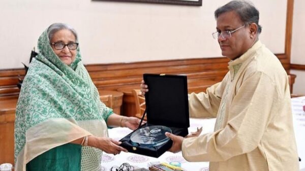 প্রধানমন্ত্রীর প্রেস সচিব ইহসানসুল করিম বাসসকে বলেন, ‘তথ্য ও সম্প্রচার মন্ত্রী ডা. হাসান মাহমুদ আজ সকালে প্রধানমন্ত্রী শেখ হাসিনার কাছে গণভবনে এশিয়া ক্লাইমেট মোবিলিটি চ্যাম্পিয়ন লিডার অ্যাওয়ার্ড হস্তান্তর করেন।’