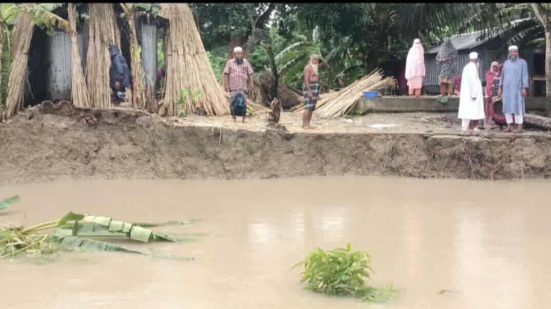 মঙ্গলবার দুপুরে নদীর পাড়ে বসে অপলক দৃষ্টিতে কি যেন দেখছিলেন তিনি। একটু এগিয়ে গিয়ে কথা হলো তার সাথে। কি দেখছিলেন তিনি? জানতে চাইলে বলেন, ওই যে নদীর ওপার দেখতেছেন না? ওই পাড়ে আমাগো বাড়িঘর সব আছিলো, এখন আর কিছুই নাই। আমার এই জীবনে তিন বার আমাগো বাড়িঘর নদীর পেটে গেছে। জায়গা-জমি যা ছিলো, সব শ্যাষ। কতো যে না খাইয়া থাকছি হিসাব নাই। যাগো নদীতে সব লইয়া যায়, তাগো তো আর কোনো অস্তিত্ব থাহে না।