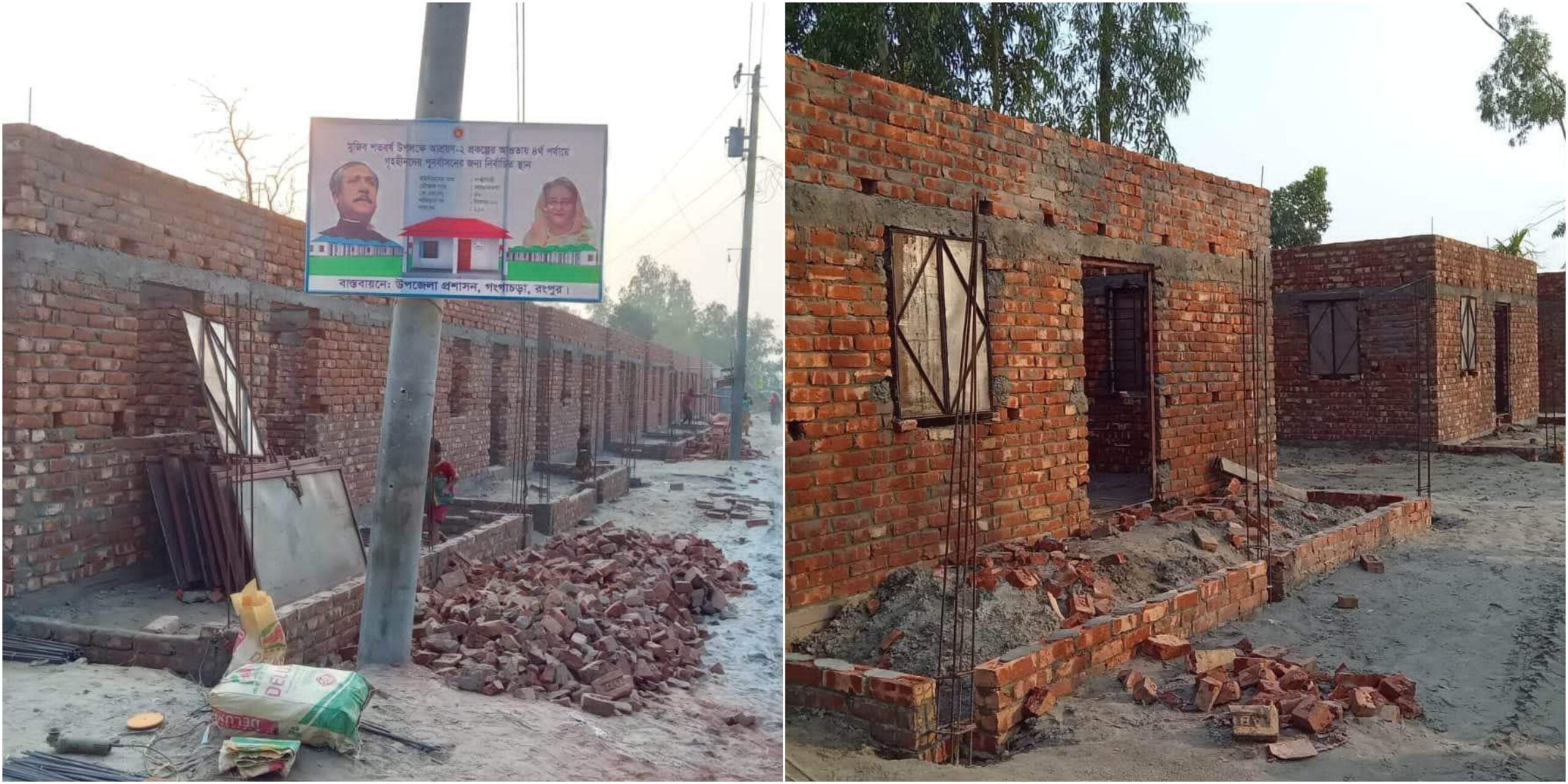 গঙ্গাচড়ায় জোরেসোরে চলছে আশ্রয়ণ প্রকল্পের ঘর নির্মানের কাজ
