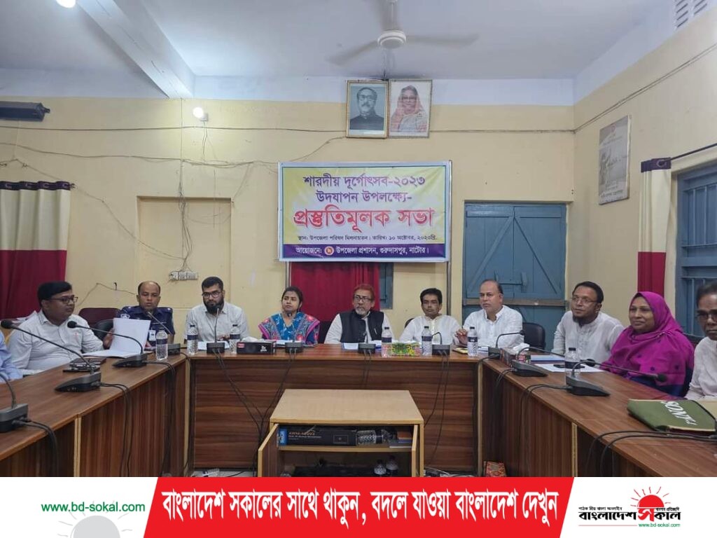 নাটোরের গুরুদাসপুরে শারদীয় দুর্গাপূজা উপলক্ষে উপজেলা প্রশাসনের আয়োজনে প্রস্তুতি সভা করা হয়েছে।