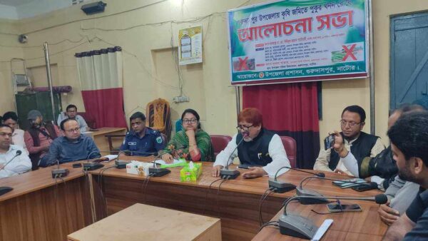 রবিবার (২৫ মার্চ) বেলা ১২ টায় উপজেলা পরিষদ হল রুমে ইউএনও সালমা আক্তারের সভাপতিত্বে ‘কৃষি জমিতে পুকুর খনন রোধে’ আলোচনা সভায় প্রধান অতিথির বক্তব্যে ওই হুশিয়ারী দেন তিনি । এমপি বলেন, চলনবিল অধ্যুষিত গুরুদাসপুর এলাকা পলি মিশ্রিত উর্বর মাটি। এ মাটিতে ফলানো ফসল স্থানীয় চাহিদা মিটিয়ে উদ্বৃত্ত থাকে। সেই মাটিতে পুকুর খনন হলে কিছু লোক উপকৃত হলেও লক্ষ লক্ষ কৃষক ক্ষতিগ্রস্থ হবে।