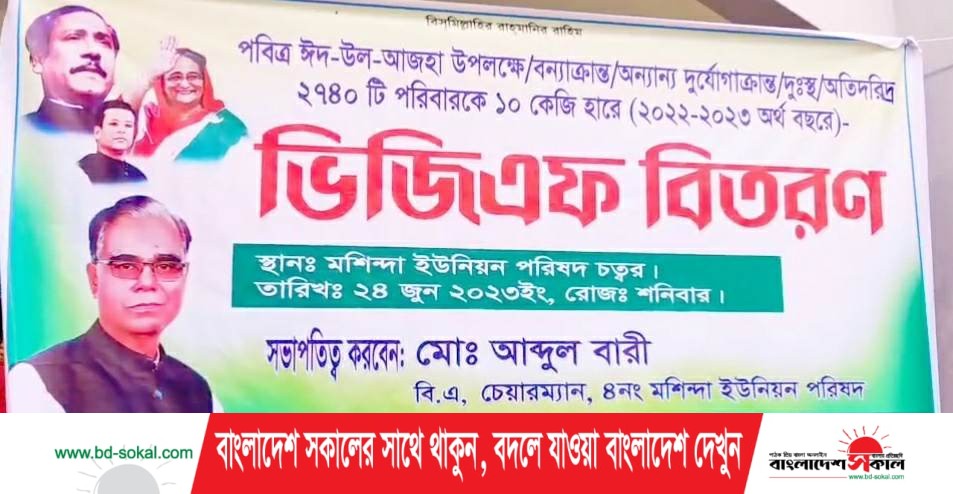 চেয়ারম্যান আব্দুল বারী জানান ঈদকে সামনে রেখে মাননীয় প্রধানমন্ত্রী শেখ হাসিনার ঈদ উপহার হিসেবে ২৭৪০ জন সুবিধাভোগী পরিবারের মাঝে ১০কেজি করে চাউল দেওয়া হয় এবং ভবিষ্যতে এ কার্যক্রম চলমান থাকবে।