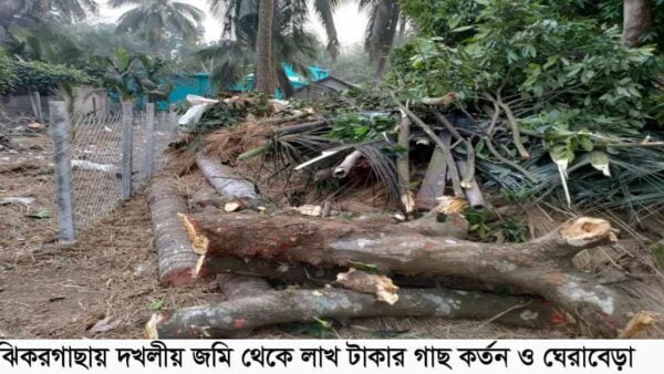 ঝিকরগাছায় দখলীয় জমি থেকে লাখ টাকার গাছ কর্তন ও ঘেরাবেড়া : থানায় অভিযোগ