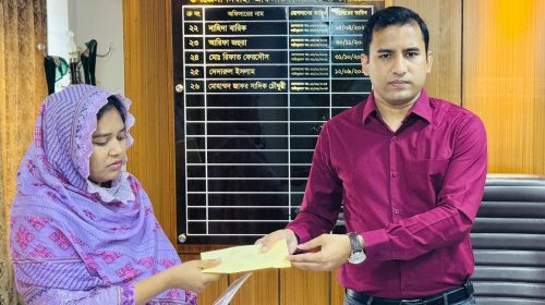 স্বামী পরিত্যক্তা নবজাতকের মা কে উচ্চশিক্ষায় ভর্তিতে সদর ইউএনও’র মানবিক সহায়তা