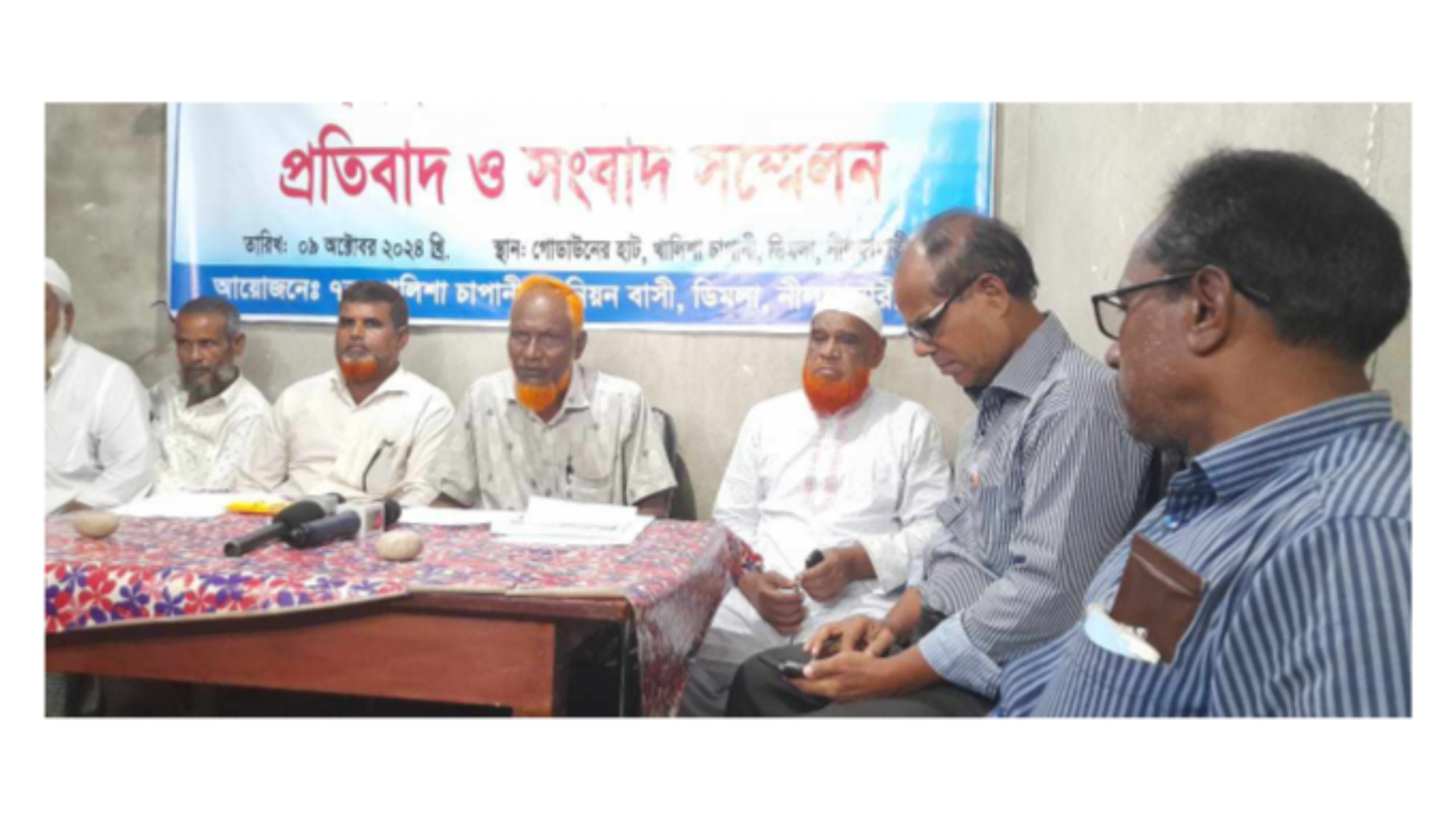 মোঃ আনোয়ার হোসেন ডিমলা, (নীলফামারী): নীলফামারীর ডিমলা উপজেলার খালিশা চাপানী ইউনিয়নের সাবেক ইউপি চেয়ারম্যান সামসুল হক মানববন্ধন করেন। আজ বুধবার দুপুরে সংবাদ সম্মেলনটি অনুষ্ঠিত হয়।