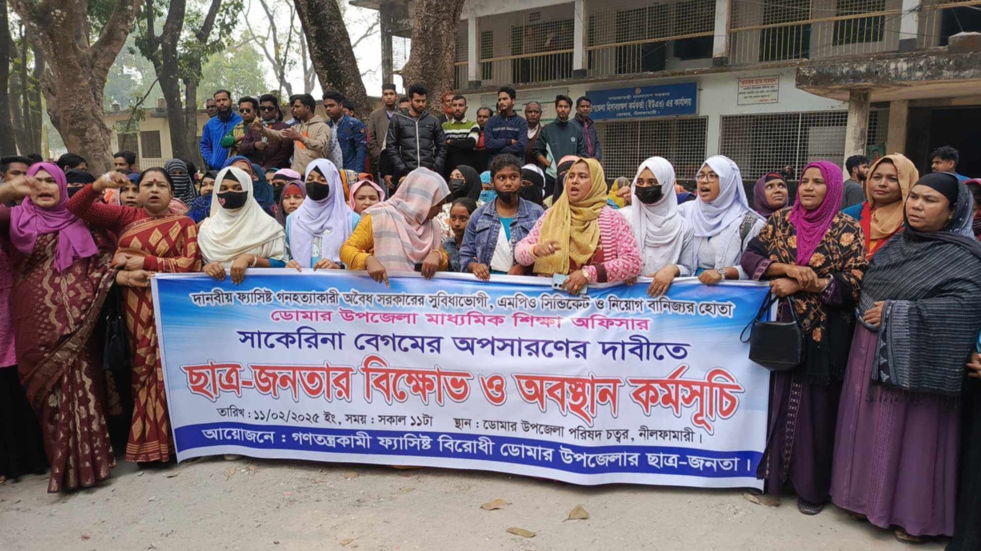 ডোমারে উপজেলা শিক্ষা কর্মকর্তা শাকেরিনা বেগমের অপসারণের দাবিতে বিক্ষোভ, অবস্থান কর্মসূচি ও স্মারক লিপি প্রদান