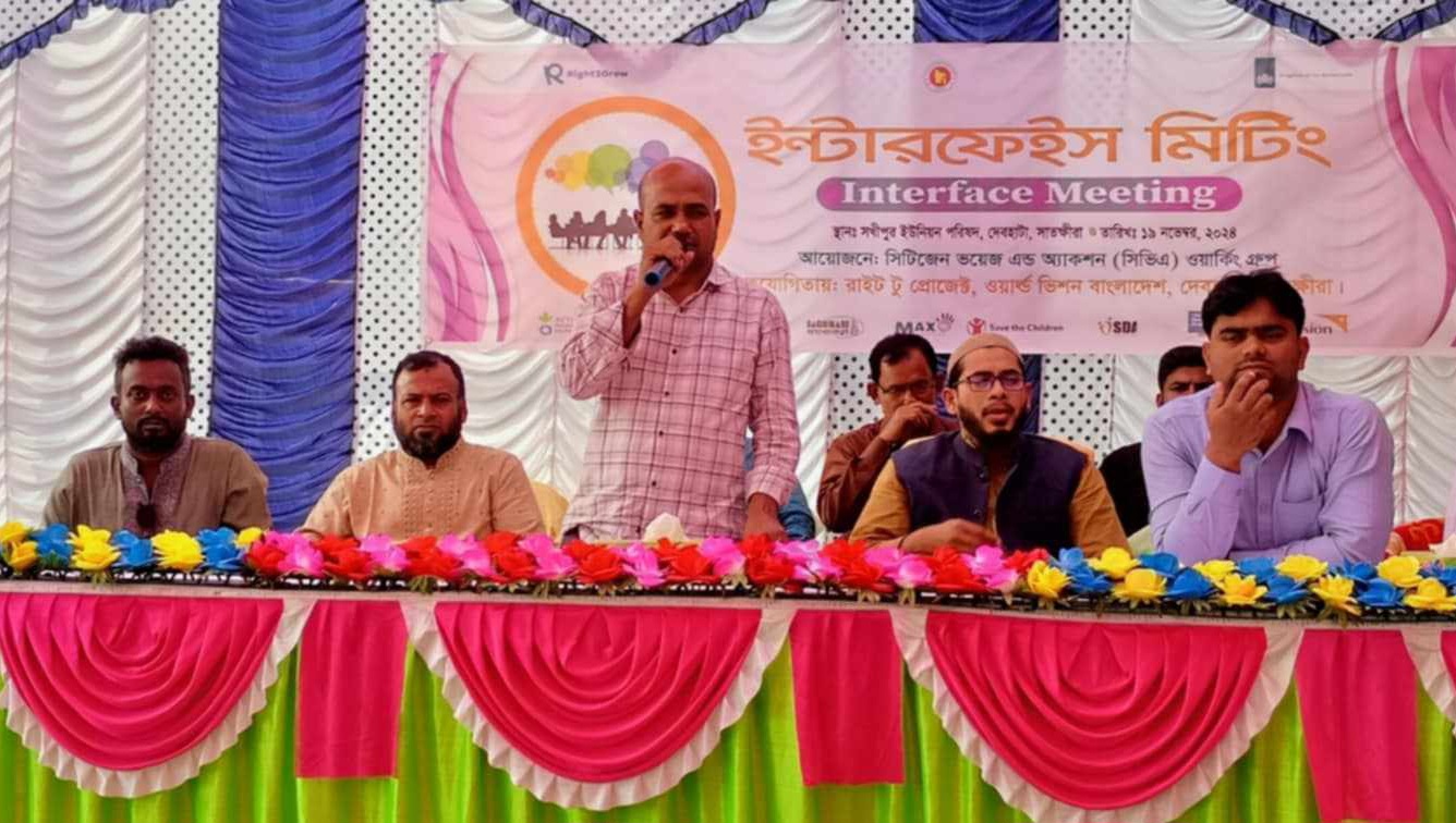 আব্দুল্লাহ আল মামুন : দেবহাটা উপজেলার সখিপুর ইউনিয়ন পরিষদে কমিউনিটি ক্লিনিকের মনিটরিং স্ট্যান্ডার্ড এর উপর সিটিজেন ভয়েজ অ্যাকশন (সিভিএ) ওয়ার্কিং গ্রুপের ইন্টারফেইস মিটিং অনুষ্ঠিত হয়েছে। মঙ্গলবার (১৯ নভেম্বর) সখিপুর ইউনিয়ন পরিষদ মাঠে ওয়ার্ল্ড ভিশন বাংলাদেশের রাইট টু গ্রো প্রোজেক্টের সহযোগীতায় ওসিটিজেন ভয়েজ অ্যাকশন (সিভিএ) ওয়ার্কিং গ্রুপের আয়োজনে এ সভা অনুষ্ঠিত হয়।