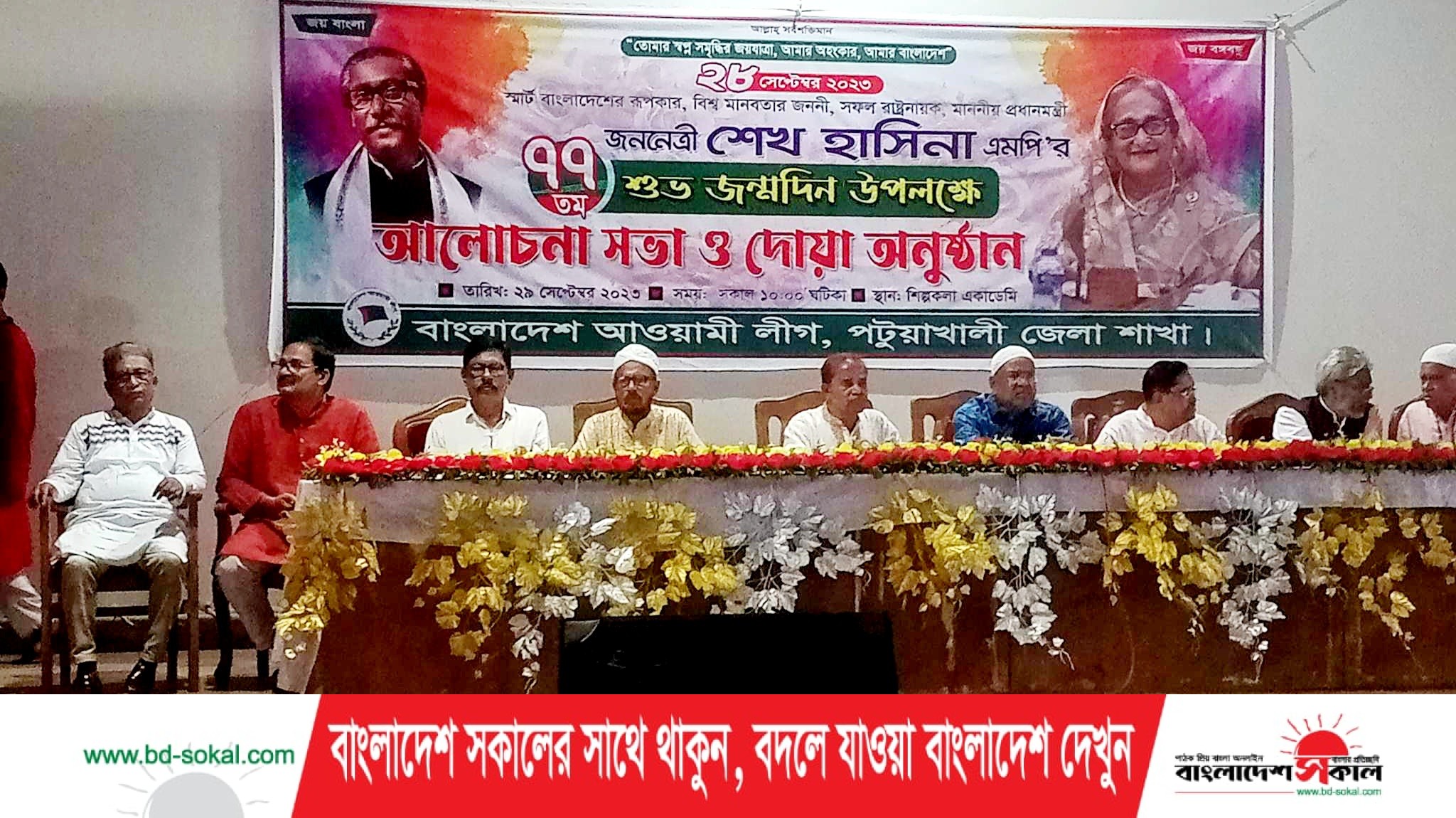 মোঃ আব্দুল আলিম, পটুয়াখালী: পটুয়াখালীতে বাংলাদেশ আওয়ামীলীগের সভানেত্রী, প্রধানমন্ত্রী শেখ হাসিনার ৭৭ তম জন্ম দিন পালন উপলক্ষে আলোচনা সভা ও দোয়া অনুষ্ঠিত অনুষ্ঠিত হয়েছে।