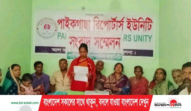 পাইকগাছা (খুলনা) সংবাদদাতা॥ খুলনার পাইকগাছা রিপোর্টার্স ইউনিটির কার্যালয়ে সংবাদ সম্মেলন অনুষ্ঠিত হয়েছে। আদালতের রায় ডিগ্রি প্রাপ্ত সম্পত্তি জবর দখল ও জান মালের ক্ষয়ক্ষতির হুমকির প্রতিবাদে রবিবার সকালে সংবাদ সম্মেলনে লিখিত বক্তব্য পাঠ করেন উপজেলা গোপালপুর গ্রামের নির্মল সরকারের স্ত্রী বিজলী রানী সরকার।