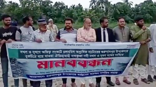 নাটোরে দূষণমুক্ত নদীর দাবিতে মানববন্ধন