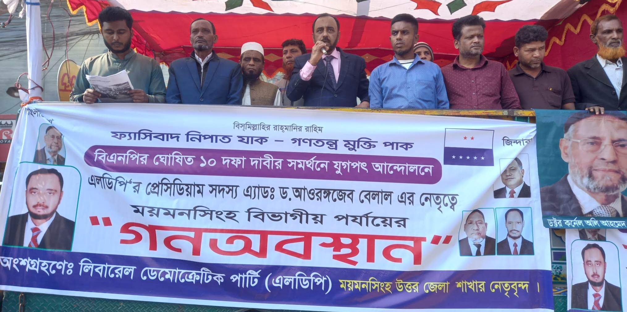 গণঅবস্থান কর্মসূচী পরিচালনা করেন লিবারেল ডেমোক্রেটিক পার্টি (এলডিপি) এর উত্তর জেলা শাখার সদস্য সচিব আব্দুল সামাদ। গনঅবস্থানে বক্তব্য রাখেন, মাওলানা ফজলুর হক, মাওলানা আবুল হোসেন, মিলন, সামাদ সহ প্রমুখ। বিএনপির ঘোষিত ১০ টি দাবিকে সর্মথন জানিয়ে লিবারেল ডেমোক্রেটিক পার্টির নেতৃত্বরা বক্তব্য প্রদান করেন।
