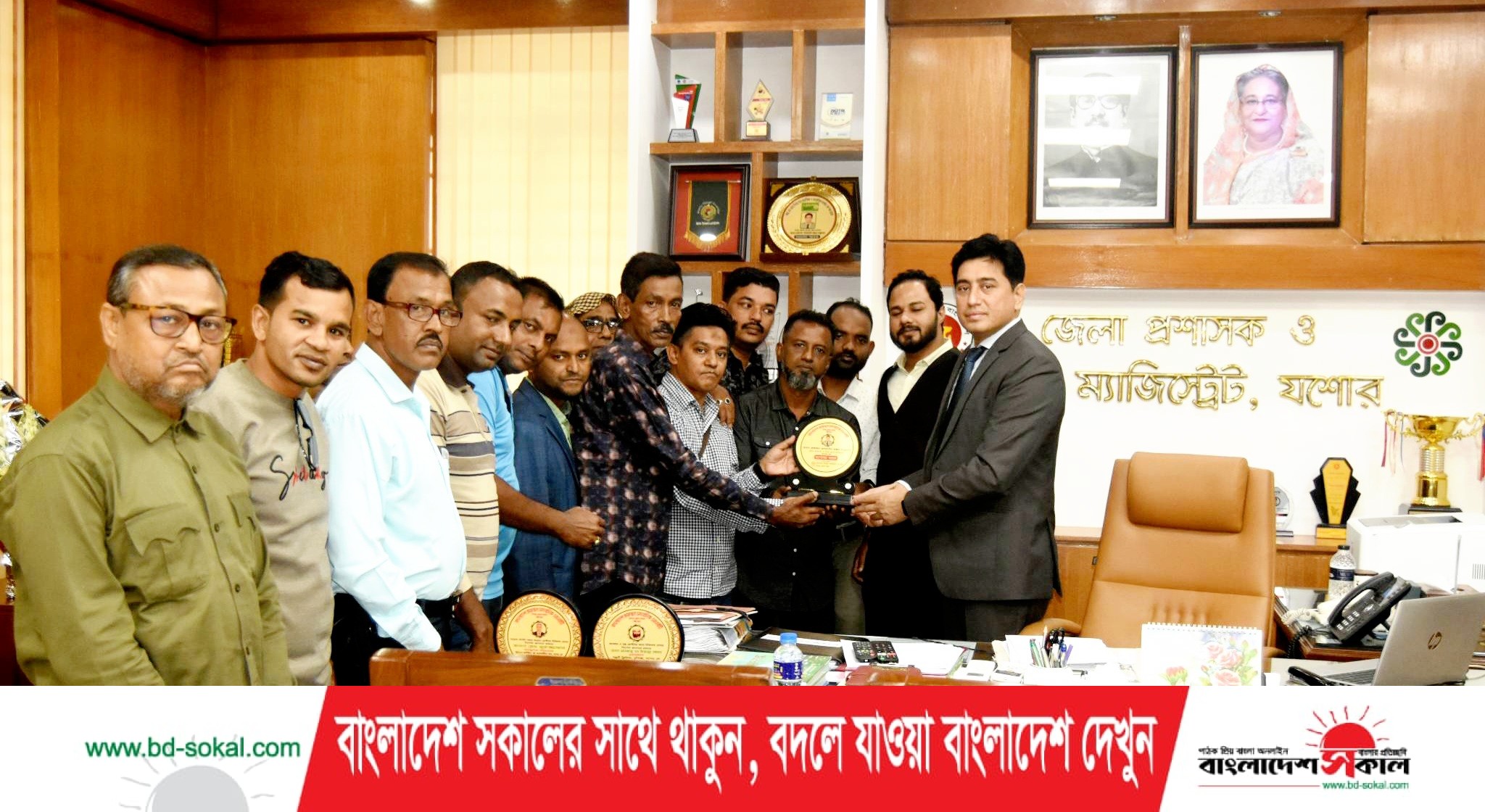 আজ বুধবার ২৯ শে নভেম্বর বেলা ১১ টায় এই শুভেচ্ছা ও ক্রেস্ট প্রদান করা হয় যশোর জেলা প্রশাসকের কার্যালয়ে। ক্রেস্ট প্রদান করেন নবনির্বাচিত কমিটির সভাপতি এশিয়ান টিভি যশোর জেলার প্রতিনিধি, দৈনিক ফুলতলা প্রতিদিনের ব্যুরো প্রধান ও দৈনিক বাংলাদেশ সকাল এর নির্বাহী সম্পাদক নাসিম রেজা এবং বিএমএসএস যশোর জেলার সাধারণ সম্পাদক দৈনিক বাংলাদেশ সকাল ও সাপ্তাহিক অগ্রযাত্রার যশোর প্রতিনিধি রিফাত আরেফিন।