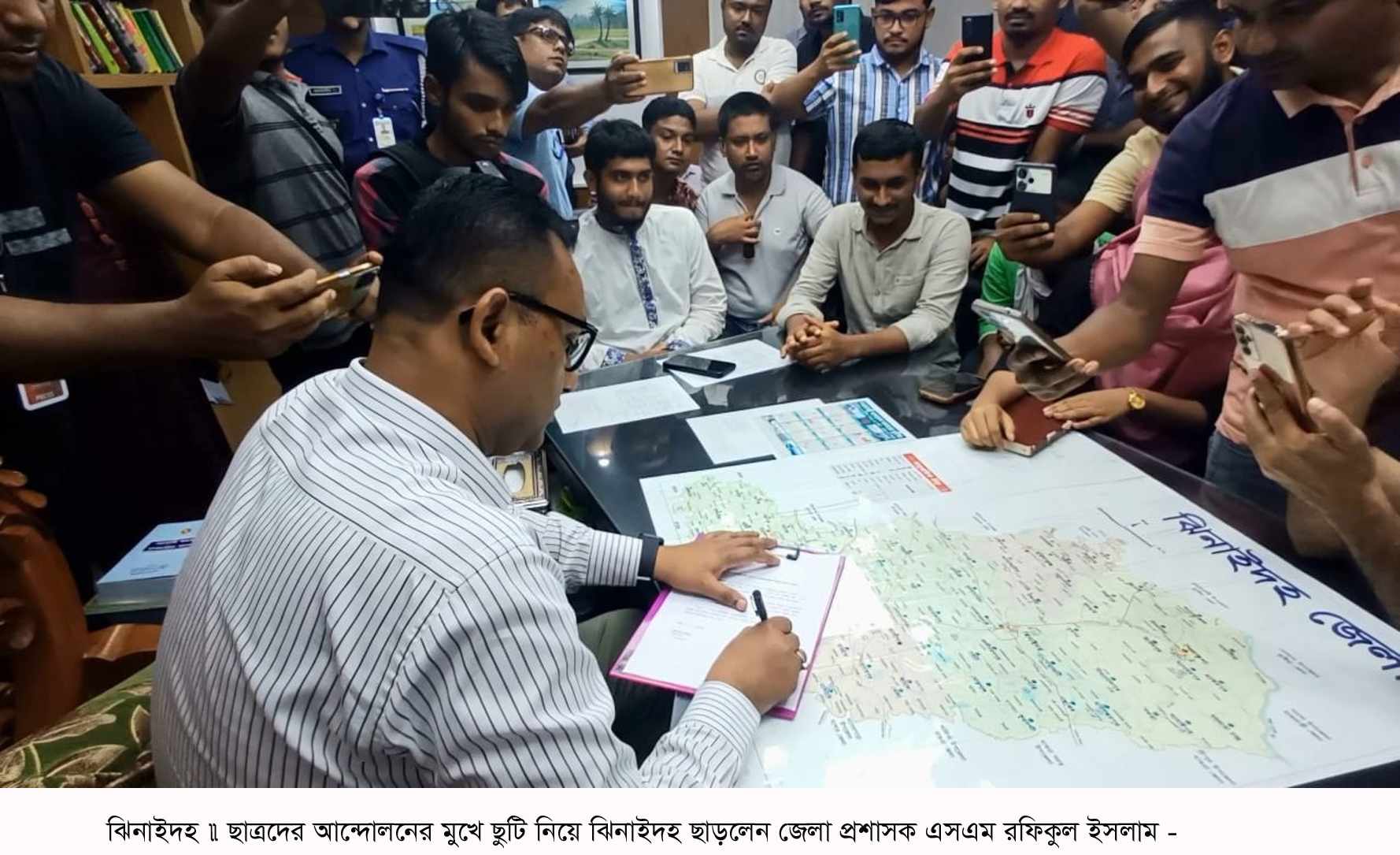 শেখ শফিউল আলম লুলু, ঝিনাইদহ: বৈষম্যবিরোধী ছাত্র আন্দোলনসহ বিভিন্ন ছাত্র সংগঠনের আন্দোলনের মুখে ছুটি নিয়ে কার্যালয় ত্যাগ করেছেন ঝিনাইদহের জেলা প্রশাসক এসএম রফিকুল ইসলাম। এছাড়া সদর সার্কেলের অতিরিক্ত পুলিশ সুপার মীর আবিদুর রহমান ও সদর থানার এসআই ফরিদকে ছাত্রদের দাবির মুখে অপসারণের সিদ্ধান্ত নিয়েছে জেলা পুলিশ।