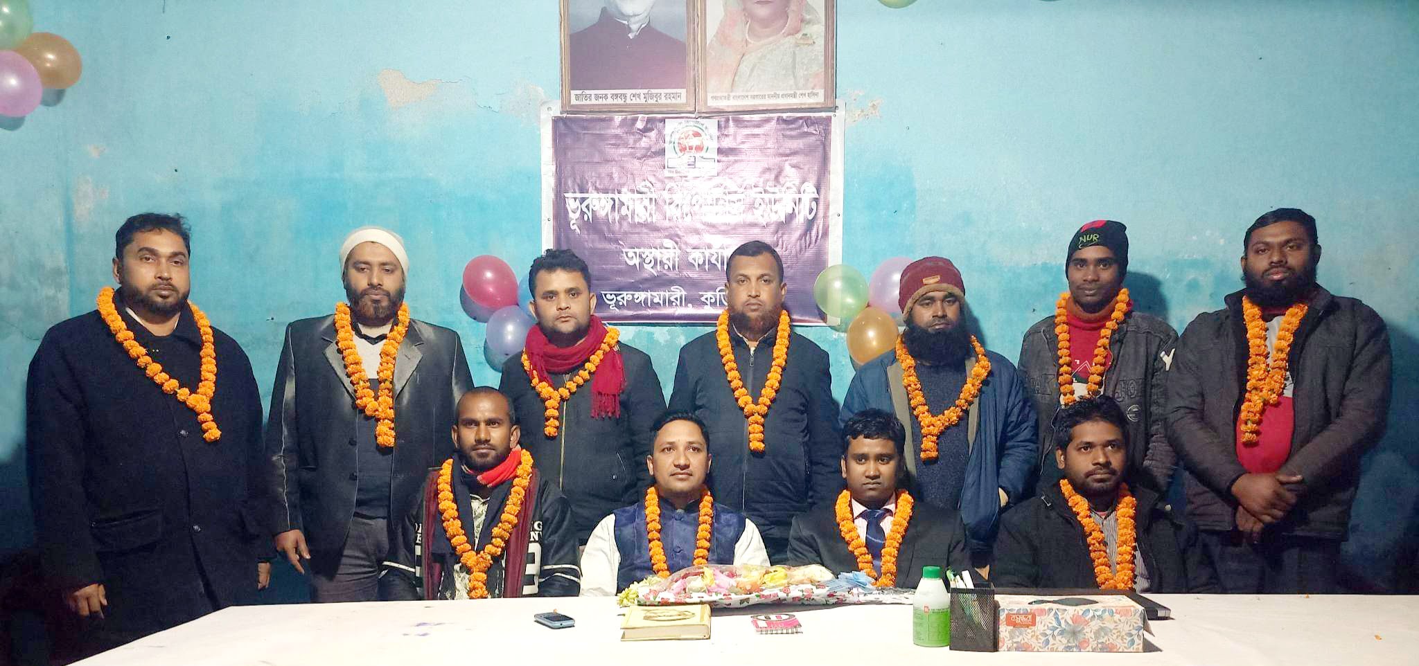 দৈনিক সচিত্র মৈত্রীর সাব-এডিটর মোঃ ফজলুল করিম আশিক সভাপতি, দৈনিক জনবানীর ভূরুঙ্গামারী উপজেলা প্রতিনিধি মোঃ মেছবাহুল আলম সহ-সভাপতি, দৈনিক আজকের সংবাদের মোঃ আরিফুল ইসলাম সাধারণ সম্পাদক, দৈনিক দেশের কন্ঠের মোঃ মনিরুল ইসলাম যুগ্ন-সাধারণ সম্পাদক, দৈনিক মত প্রকাশের মোঃ কামরুল হাসান কাজল সাংগঠনিক সম্পাদক, দৈনিক দক্ষিনের ক্রাইমের মাহমুদ হাসান অর্থ ও পরিকল্পনা সম্পাদক, দৈনিক আলোকিত সকালের মোঃ আবু মুসা দপ্তর সম্পাদক, দৈনিক ক্রাইম তালাশের এসএম. নুরুল আমিন প্রচার-প্রকাশনা সম্পাদক, দৈনিক দেশ সেবার মোঃ আব্দুর রউফ মন্ডল তথ্য ও গবেষণা সম্পাদক, দৈনিক বিশ্ব বার্তার মোঃ খলিলুর রহমান কার্যকরী সদস্য, ঢাকা টুয়েন্টিফোর লাইফের মোঃ রাসেল উদ্দিন কার্যকরী সদস্য, বাংলাদেশ সকাল এর মোঃ আবু সুফিয়ান পারভেজ সহ ১১ সদস্য বিশিষ্ট কার্যনির্বাহী কমিটি ঘোষণা করা হয়।