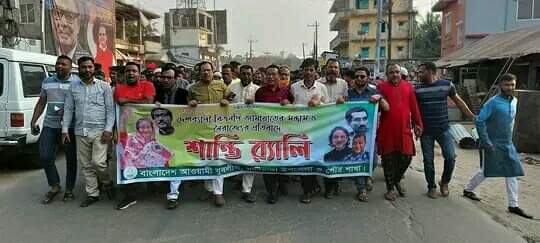 এ এম ফাহাদ, খাগড়াছড়ি॥ বিএনপি-জামাতের সন্ত্রাস, নৈরাজ্য ও দেশবিরোধী ষড়ষন্ত্রের প্রতিবাদে আওয়ামী লীগের কেন্দ্রীয় কর্মসুচীর অংশ হিসেবে শান্তি সমাবেশ করেছে মাটিরাঙ্গা উপজেলা যুবলীগ ও পৌর যুবলীগ। সোমবার (২৭ ফেব্রুয়ারি ২০২৩ইং ) বিকাল ৪টার দিকে মাটিরাঙ্গা দলীয় কার্যালয় থেকে একটি শান্তি সমাবেশের র্যালি বের হয়ে মাটিরাঙ্গা বাজারের প্রধান প্রধান সড়ক প্রদক্ষিণ শেষে দলীয় কার্যালয়ে এসে শেষ হয়।