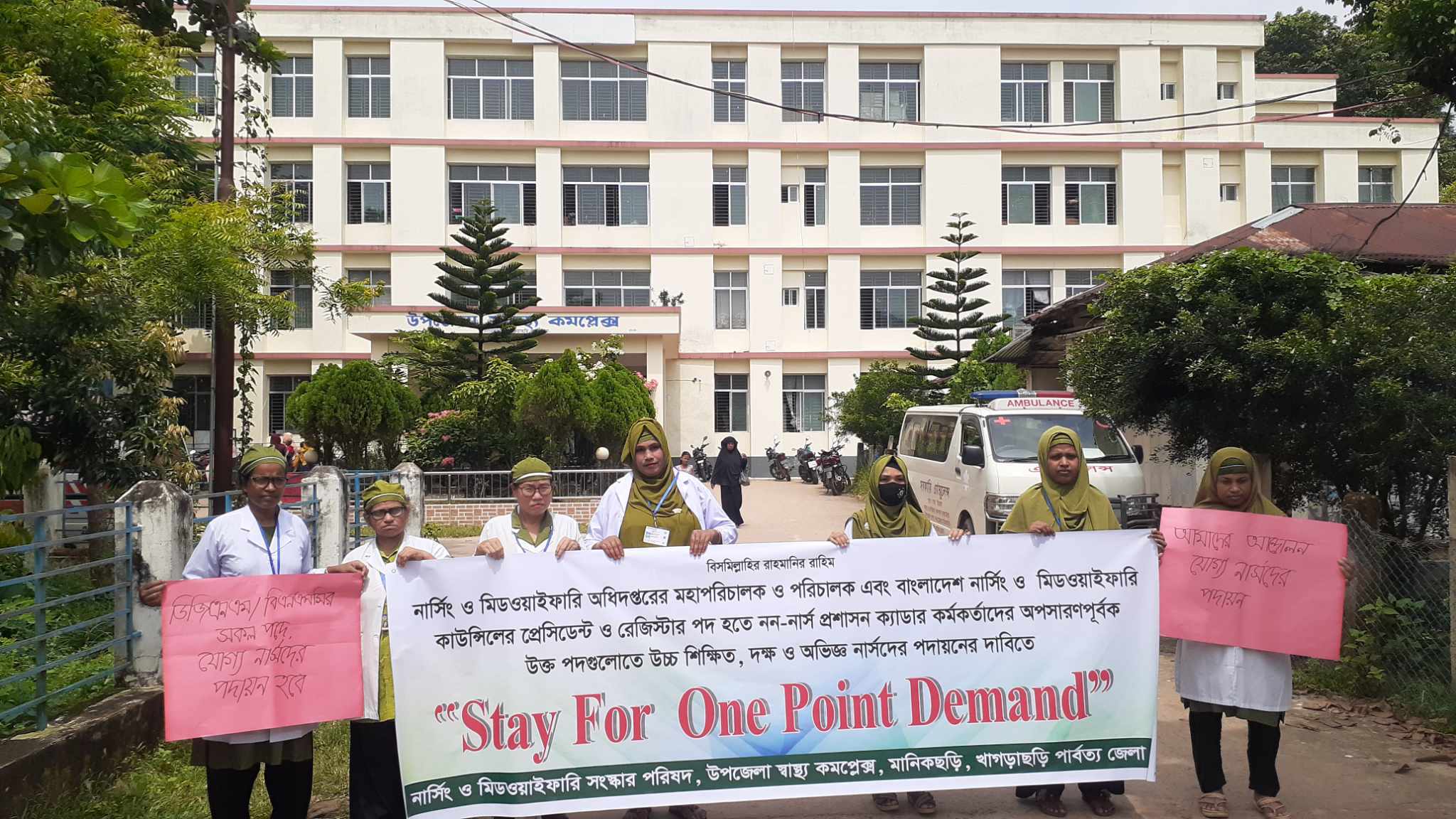 নার্সিং পেশা ও নার্স কর্মকর্তাদের নিয়ে কটূক্তি করার প্রতিবাদে ও দক্ষ নার্সদের পদায়নের এক দফা দাবি নিয়ে মূলত তারা এ মানববন্ধন করেন।