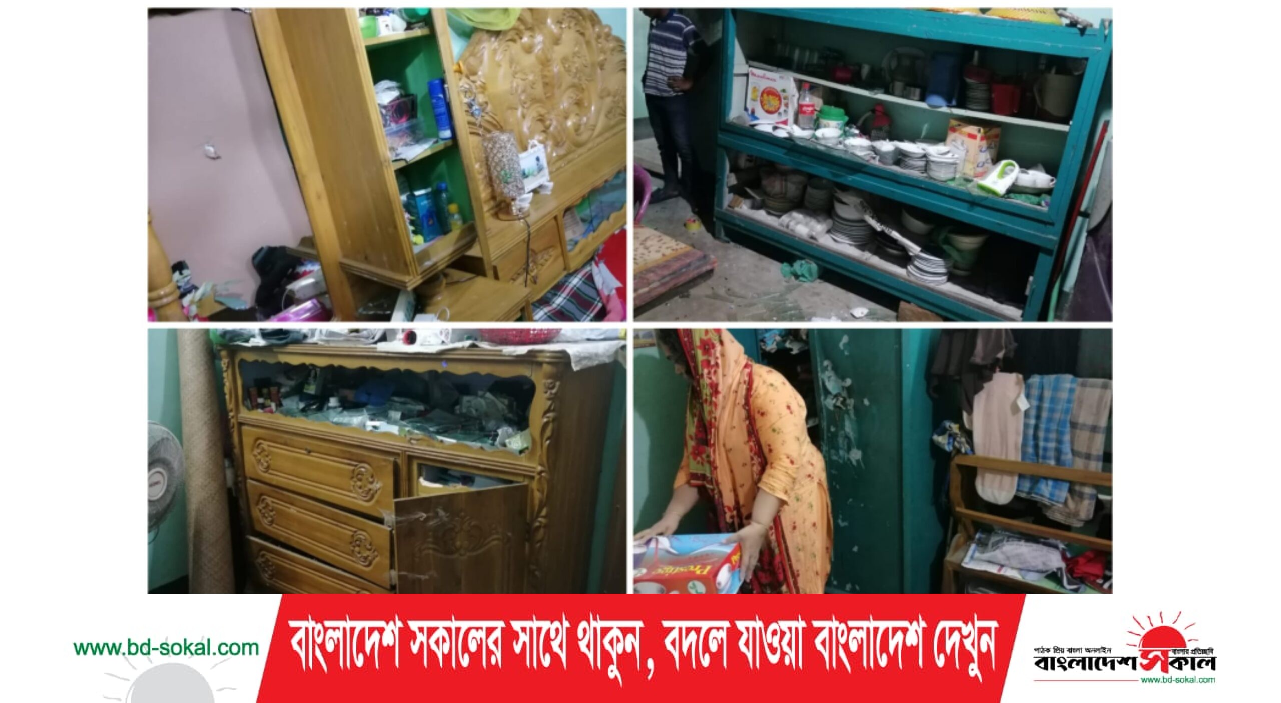 এ সময় দুর্বৃত্তরা কামরুলের বাসার আলমারি ভেঙ্গে স্বর্ণালঙ্কার ও নগদ টাকা লুট করে নিয়ে যায়। তাছাড়া বাসায় ফার্নিচার সহ প্রয়োজনীয় সবকিছু ভেঙ্গেচুরে একাকার করে দিয়ে যায়।