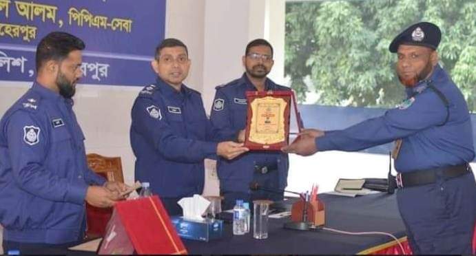 পুলিশ সুপার মোঃ রাফিউল আলম(পিপিএম-সেবা)’র সভাপতিত্বে মাসিক কল্যাণ সভায় অন্যদের মধ্যে বক্তব্য রাখেন অতিরিক্ত পুলিশ সুপার (প্রশাসন) জামিরুল ইসলাম,( সার্কেল) আজমল হোসেন, মেহেরপুর সদর থানার ভারপ্রাপ্ত কর্মকর্তা রফিকুল ইসলাম প্রমূখ। সভায় মেহেরপুর জেলা পুলিশের সদস্যরা পুলিশ সুপারের নিকট তাদের সমস্যার কথা তুলে ধরেন।পুলিশ সুপার তাদের সমস্যাগুলো তাৎক্ষণিক সমাধানসহ প্রয়োজনীয় দিক নির্দেশনা প্রদান করেন। পরে পুলিশ সুপার মোঃ রাফিউল আলম, পিপিএম-সেবা মেহেরপুর জেলা পুলিশের বিভিন্ন পদমর্যাদার অফিসার ও ফোর্সদের মধ্যে ভালো কাজের স্বীকৃতিস্বরুপ নগদ অর্থ ও ক্রেস্ট প্রদান করেন।