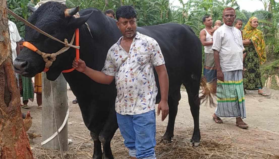 গরুটির মালিক উপজেলার নেকমরদ বাজারের হোটেল ব্যবসায়ী মনোয়ার হোসেন জানান,সাড়ে তিন বছর আগে গ্রামের একজনের কাছ থেকে ফ্রিজিয়াম জাতের কাল রঙের এ ষাঁড় বাছুরটি কিনেছিলাম। তার পর থেকে আমি গরুটির লালন পালন করি। খুব শান্ত স্বভাবের। পুরো শরীল কালা তাই শখ করে নাম রাখি ‘কালা বাবু’ । এর প্রতিদিনের খাদ্য তালিকায় রয়েছে কাঁচা ঘাস, ভুসি, চালের গুড়ো, ভুট্টা, অ্যাংকর, খৈল ইত্যাদি । তার পেছনে প্রতিদিন খরচ হচ্ছে ৭শ টাকা। প্রতিদিন গোসল করাতে হয়। গরমে আরামের জন্য ফ্যান ও মশা তাড়াতে দৈনিক কয়েল জ্বালাতে হচ্ছে।খুব শখ করে সন্তানের মতো লালনপালন করছি। এবারের কোরবানির ঈদে বিক্রি করে দেব।’ কেমন দাম চান? জানতে চাইলে তিনি বলেন, দাম ৬ লাখ টাকা । যে বা যারা কালা বাবুকে নেবেন তারা নিজেরাই দেখে মেপে দাম করে নিয়ে যাবেন।