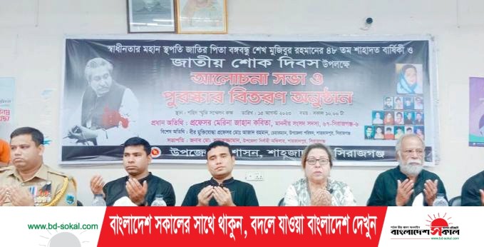 মোঃ মাহবুবুর রহমান সিরাজগঞ্জ॥ সিরাজগঞ্জের শাহজাদপুরে যথাযোগ্য মর্যাদায় ১৫ই আগষ্ট জাতীয় শোক দিবস পালিত হয়েছে। এ দিবস উপলক্ষে শাহজাদপুর উপজেলা আওয়ামী লীগ দিনব্যাপী নানা কর্মসূচী গ্রহণ করেছে। কর্মসূচীর মধ্যে ছিল, সকাল সাড়ে ৭ টায় স্থানীয় দলীয় কার্যালয়ে জাতীয় ও দলীয় পতাকা উত্তোলন, কালো ব্যাচ ধারন ও আলোচনা সভা।